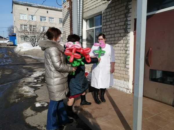 Сотрудники срочной социальной службы поздравили обслуживаемых отделения сестринского ухода ГБУЗ НО "Краснобаковская ЦРБ" с наступающим праздником 8 марта и вручили подарки